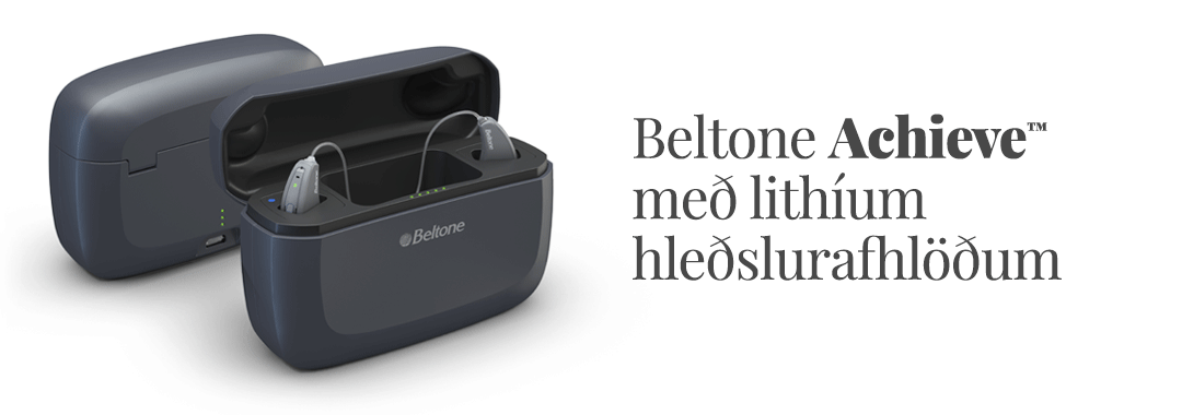 Skildu rafhlöðuskiptin eftir í fortíðinni. Beltone Achieve™ eru með innbyggðum lithíum rafhlöðum svo nú þarftu ekki lengur að skipta um rafhlöður í heyrnartækjunum þínum. Og með einu notendavænsta hleðslutækinu á markaðnum eru heyrnartækin þín fullhlaðin fyrir hvern dag.